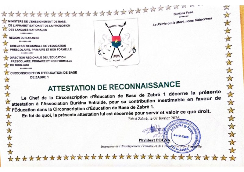 L’association Burkina Entraide poursuit son appui au système éducatif dans la commune de Zabré.